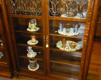 Antique Oak Larkin Bookcase Double Door Leaded Glass Claw Feet Etsy